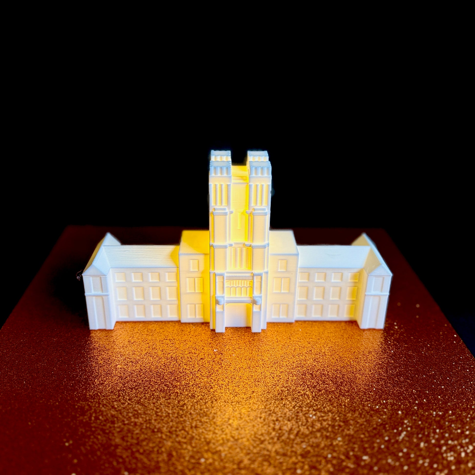 This 3D-printed, LED-lighted Virginia Tech Burruss Hall figurine is a must-have for graduates, alumni, and Hokie fans! Whether you're looking for the perfect graduation gift, a sophisticated office decoration, or a unique way to showcase school spirit in a dorm room, this detailed, illuminated replica brings the historic beauty of Burruss Hall to life.